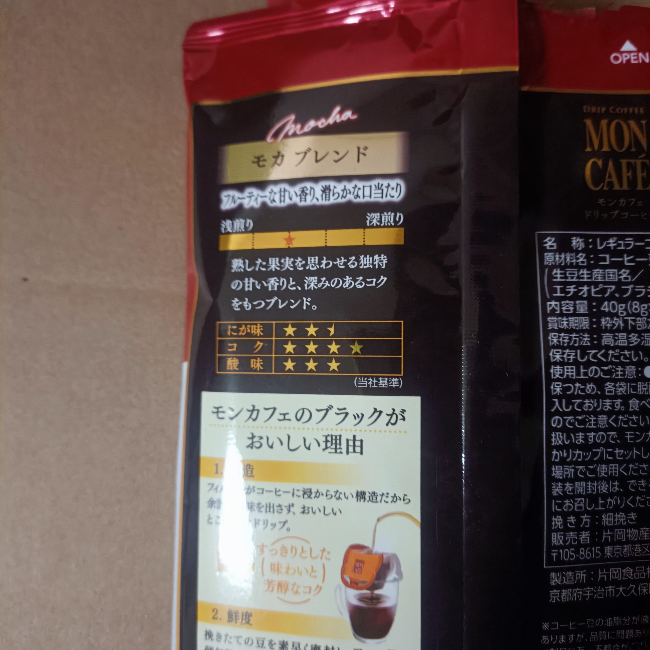 同じ片岡物産が製造・販売している匠のドリップコーヒーに比べて弱い印象を受けました。